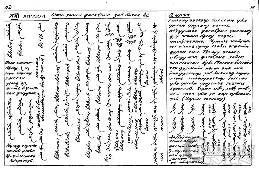 Монгол бичиг бол кирилл бичгээс хэд дахин цөөн дүрэмтэй. Эхлээд үсгээ нүдлэх, бичиж дадах хэрэгтэй.