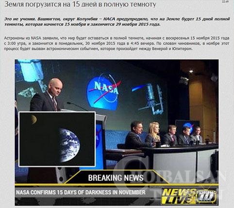 Энэ сарын 15-ны өдрөөс эхлэн 29-нийг хүртэл манай дэлхий 15 хоногийн турш нар үзэхгүй харанхуй байна гэж Америкийн сансар судлалын НАСА агентлаг урьдчилан анхааруулсан байна. NASA-гийн сансар судлаачид арваннэгдүгээр сарын 15-ны ням гарагийн 03:00 цагаас эхлэн 30-ны даваа гарагийн 16:45 цаг хүртэл дэлхий бүхэлдээ харанхуйлах одон орны сонин үйл явдал болно гэж мэдээлжээ.