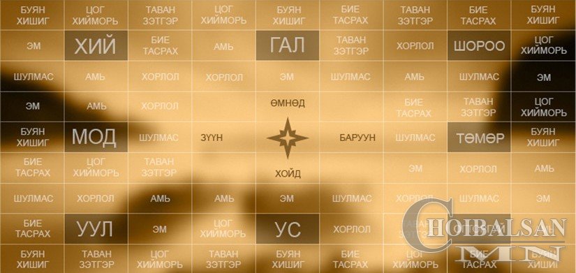 Урвасан жилд хүнийг ямар хөлөлд суусныг тооцохдоо эрэгтэй хүнийг "Гал”-аас эхлэн нар зөв, эмэгтэй хүнийг "Ус”-аас эхлэн нар буруу тойруулан билгийн насаар тоолж ямар хүлэлд хүрнэ тэр нь хүний тухайн жилд суух суудал болно. Шинийн нэгний өглөө зүг чигээ гаргахдаа суусан хөлөлийн хийморийн зүгт гарч буян хишгийн зүгээс ирдэг.