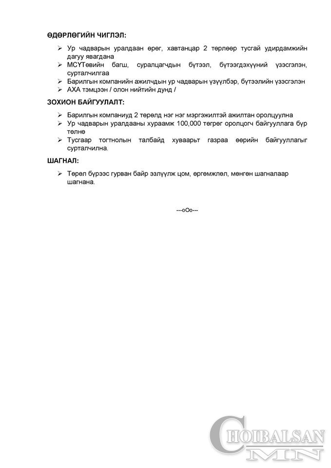 "БАХАРХАЛ ДҮҮРЭН БАРИЛГЫН МЭРГЭЖИЛ САЙХАН ” ӨДӨРЛӨГ