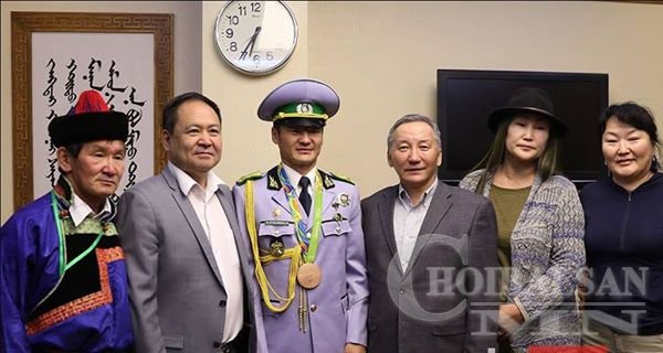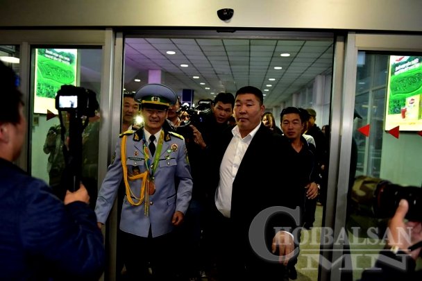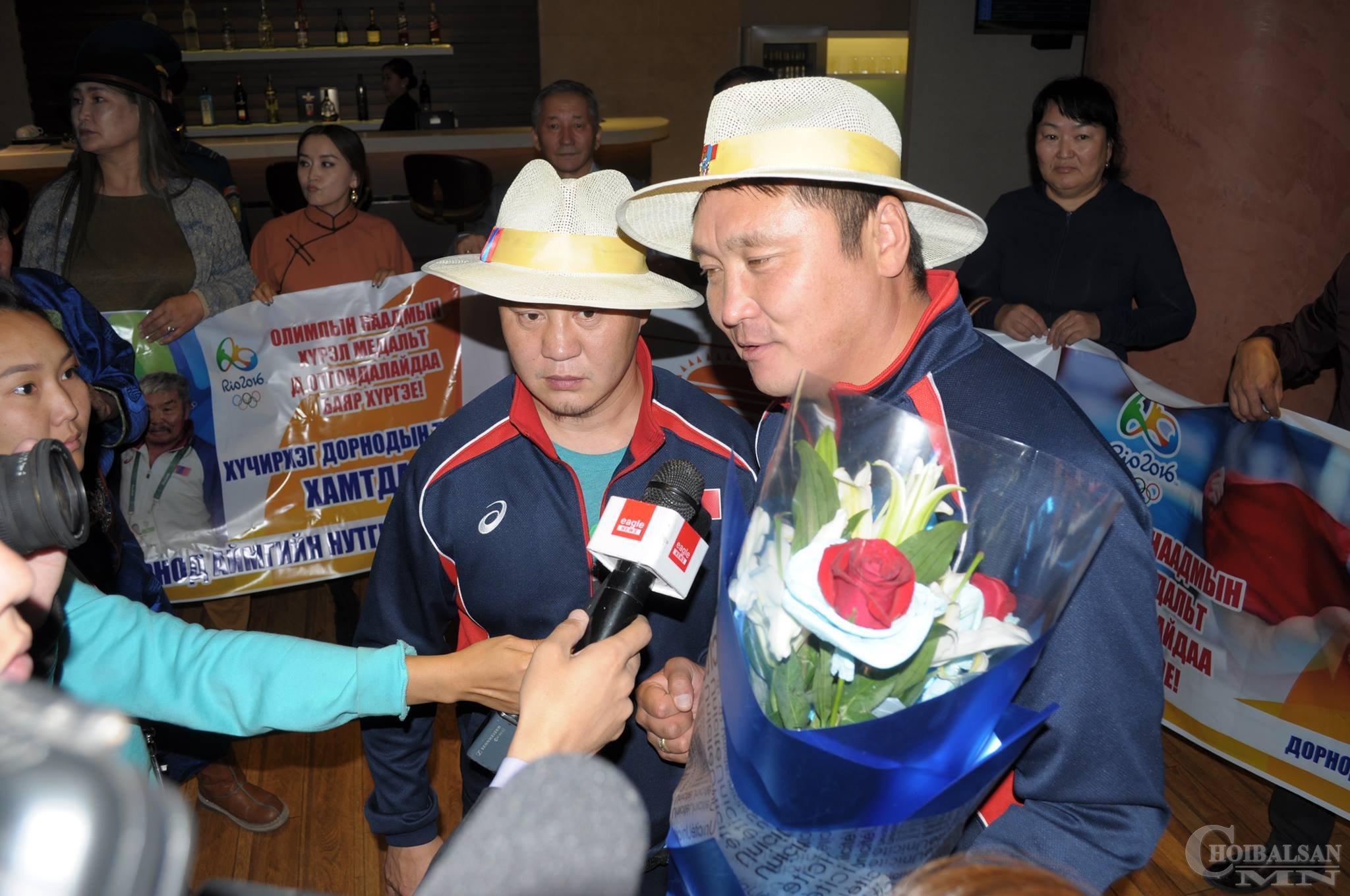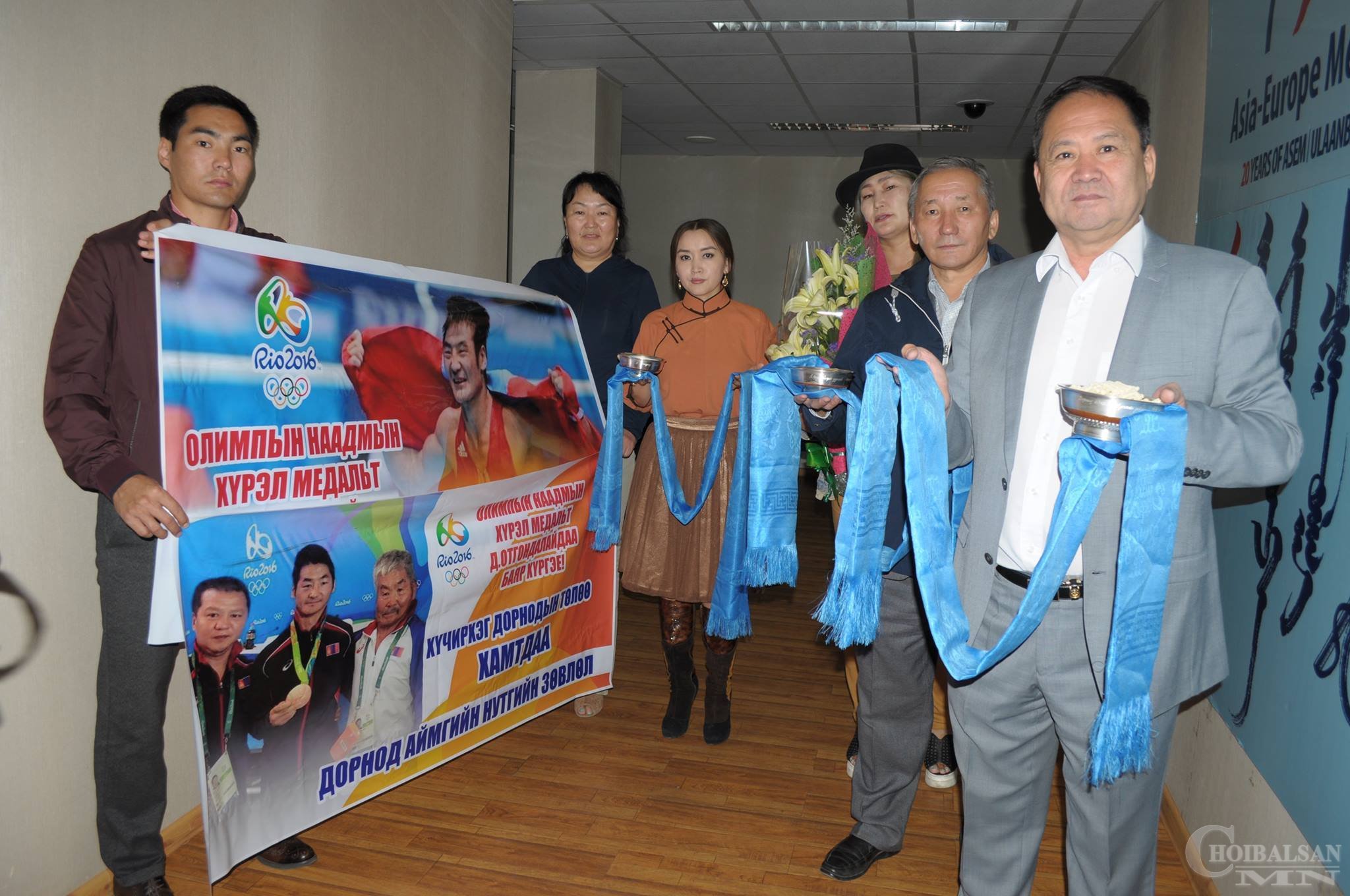 Түүнийг "Чингис хаан” олон улсын нисэх буудалд гэр бүл, хамаатан садан, найз нөхөд, ХХЕГ-ын дэд дарга, бригадын генерал Ч.Сайнтөр болон хил хамгаалах байгууллагын хамт олон, үлээвэр найрал хөгжим, Дорнод аймгийн нутгийн зөвлөл, Монголын Боксын холбооныхон тосч авсан юм.