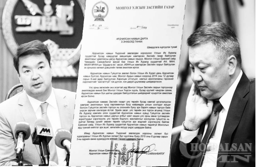 Харин тухайн тогтоолын бүрдэл дутуугэх шалтгаанаар буцсан гэдгийг ч хэлэх хүн олон бий. Дараагийн асуудал нь Монгол төрийн номер гурав дахь эрхэм дайралтад өртсөн явдал. Үнэндээ өдгөө улс төрд өрнөж байгаа үйл явдлаас харахад Ч.Сайханбилэг сайд дайралтад өртөж, өөрийн гараар амиа хорлох алхам хийлээ гэж харахаас аргагүй. Эсвэл ийм алхмыг хийлгэсэн ч байж болох. Учир нь, тэрбээр өнгөрсөн баасан гаригт УИХ-ын дарга, АН-ын дарга З.Энхболдод шаардлага хүргүүлсэн. Засгийн тэргүүний шаардлагыг сийрүүлбэл, "Зургаан сайдыг огцруулах, чөлөөлөх асуудлын хувьд хуулийнхаа дагуу хувьд яваа. Би танхимын сайд нартайгаа уулзсан. Сайд нарыг огцруулах асуудал нэгэнт улс төрийн намын шийдвэр гарсан учраас үйл ажиллагаань процессын дагуу үргэлжлээд явна. Засгийн газрын тухай хуулийн 23.1.1-д заасны дагуу энэ асуудлыг Ерөнхий сайдын хувьд Монгол Улсын Ерөнхийлөгчтэй зөвшилцөнө. Зургаан сайдыг чөлөөлснөөр асуудал өөрөө шийдэхгүй. Асуудал нээлттэй хэвээр байх болно. Тиймээс намын дарга, Ерөнхий сайд хамт байх ёстой гэдэг асуудлыг үндсэнд нь шийдэх ёстой. Одоо бид намрын чуулганаар ярих гэж байгаа Үндсэн хуулийн нэмэлт өөрчлөлт, энэ чиглэлийн хариултыг улс орон даяар гаргах ёстой гэж үзэж байгаа. Тийм учраас УИХ- ын дарга, Ардчилсан намын дарга З.Энхболдод Ерөнхий сайдын хувьд шаардлага хүргүүллээ. Энэ шаардлагад дээрх асуудлаа шийдэх үүднээс АН-ын Үндэсний зөвлөлдөх хорооны хуралдааныг наймдугаар сарын 3-ны УИХ ын ээлжит бус чуулганаас өмнө зарлан хуралдуулж, намын дарга, Гүйцэтгэх засаглалын тэргүүн хоёр нэг байх асуудлыг шийдэх ёстойг тусгасан. Үүнийг ҮЗХ-ны бүрэлдэхүүнээр шийдэх ёстой. Яагаад гэхээр ҮЗХ-ны бүрэлдэхүүн бол Гүйцэтгэх зөвлөлийн болон УИХ, ҮЗХ-дын гишүүд гээд улс орон даяар ард түмэнтэйгээ нүүр тулж явдаг хүмүүс учраас энэ шийдвэрийг гаргах ёстой гэж үзэж байна. Тиймээс маш яаралтай хугацаанд ҮЗХ-ны ээлжит бус хуралдааныг хуралдуулах шаардлагыг намын даргад хүргүүллээ” хэмээсэн. Нэг үгээр хэлбэл, энэ явдлыг Ч.Сайханбилэг Ерөнхий сайдын суудлаасаа хүсэлтээрээ татгалзаж байгаа хэрэг гэж нийтэд харагдах нь ойлгомжтой. Энэ шийдвэрийг тэрбээр бие даан гаргаагүй нь бүр ч тодорхой. Үүний цаана УИХ-ын дарга биш АН-ын даргын хувиар З.Энхболд шууд болон шууд бусаар оролцож байгааг учир мэдэх эрхмүүд хэлж байна. Мэдээж ингэж оролцохын цаана Зэ даргад ашигтай, хэрэгтэй шийдвэр гарах учраас тэр шүү дээ. Товчхондоо, Ч.Сайханбилэг бүтэн долоон сар Ерөнхий сайдаар дув дуугүй ажилласан атлаа гэнэтхэн л намын дарга нь Ерөнхий сайд байх Намуудын тухай хуулийн заалт хэрэгжих учиртай гэж ухаарна гэж байхгүй. Үүний цаана намын бодлого байгаа нь гарцаагүй. Гэхдээ намын бодлого гэдэг нь цэвэр биш магадгүй бохир улс төр байж мэдэх. Тэр дундаа АН-ын дотоод зодоон, тэмцлийн илэрхийлэл ийнхүү ил гарч байж ч болох. Олон жилийн дараа засагт олонхи болсон үеэсээ эрх мэдлийн төлөө тулалдаж ирсэн АН-ынханд хугацаа бага үлдсэн ч их, бага албан тушаал одоо ч хэрэгтэй байгаа бололтой юм.