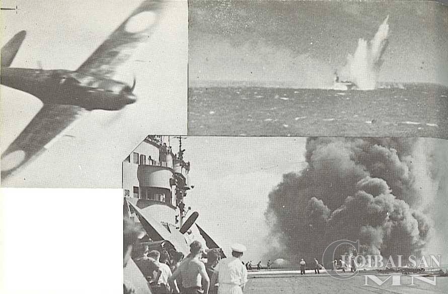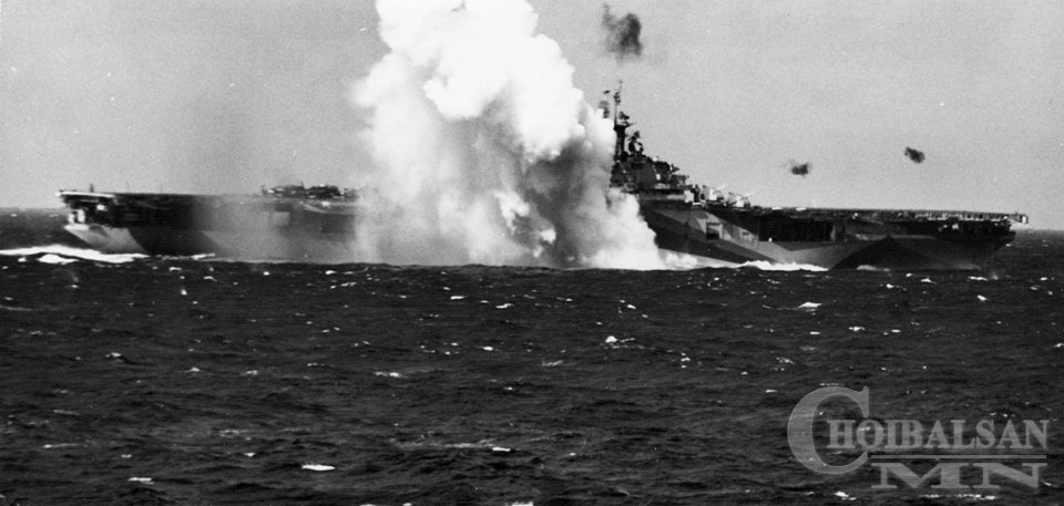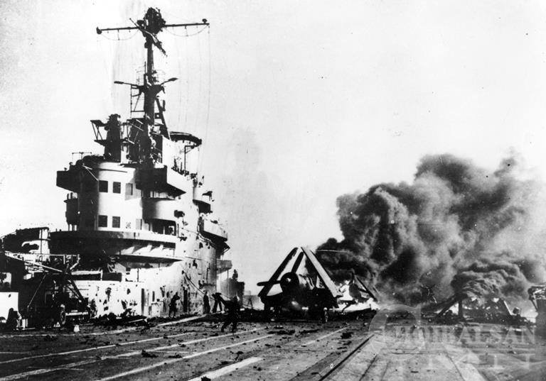 • Америкийн "Intrepid" байлдааны хөлгийг камеказе нар устгахад 60 усан цэрэг нас баржээ.