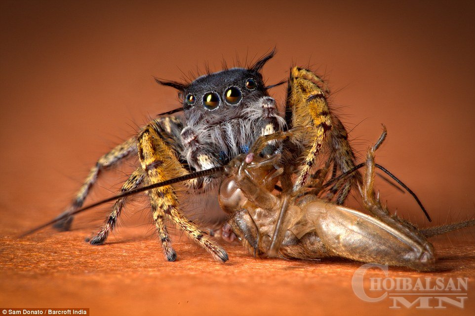 Хөл, их бие гээд бүхлээрээ үсээр хучигдсан аалзны хэд хэдэн бичил хортон төрөл АНУ-ын Невада мужийн халуун цөлд амьдарна. Сэм гэрийнхээ ойролцоо байх аалзны торыг ажиглаж, тэднийг ямар үйлдэл хийж байгааг тусгайлан байрлуулсан аппаратны тусламжтай хянасан гэнэ. Улмаар барьсан ангаа хэрхэн жижиглэн идэж байгааг маш сайн линзны ачаар дүрсийг нь буулгаж чаджээ.