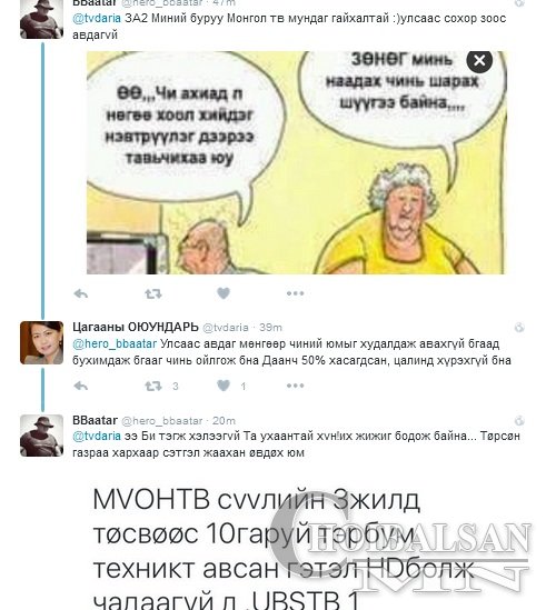 Үндэсний гэх тодотголтой МҮОНРТВ-ийг үзэгч түмэн хуучирсан өнгө төрх, шинэлэг бус, үзэх зүйлс ховор хэмээн шүүмжилдэг нь нууц бишээ. Нээрээ л бидний хүүхэд үед гарч байсан хүүхдийн нэвтрүүлэг, өнөөх л уйтгартай хуучны кино одоог хүртэл гарсаар. Ная шахам жилийн түүхтэй олон нийтийн радио, телевизийн бодлого мэдээж эрхэм чухал ч арай шинэлэг, шинэ үеийн залуусын анхаарлыг татахуйц баймаар. Энэ тухай "Херо интертаймент”-ын найруулагч Б.Баатар цахим ертөнцөд өөрийн үзэл бодлоо чөлөөтэй илэрхийлэв. Тэрээр тус телевизийн өнөөгийн байдалд сэтгэл хангалуун биш байгаагаа "Монголын үндэсний телевиз үзэхээр монгол улсын хоцрогдол, ядуурал мэдрэгдэх юм. Өнгө төрх найруулга алга” хэмээн хурцаар шүүмжлэв. Харин үүний хариуд МҮОНРТВ-ийн Ерөнхий захирал Ц.Оюундарь "Улсаас авдаг мөнгөөр чиний юмыг худалдаж авахгүй байгаад бухимдаж байгааг чинь ойлгож байна. Даанч 50% хасагдсан, цалинд хүрэхгүй байна” хэмээн ширүүхэн маргаан өнүүлэв.