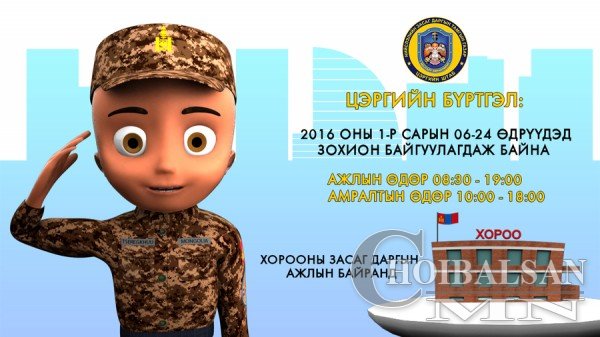 иргэний цэргийн үүргээ биелүүлнэ үү гэж Нийслэлийн ЗДТГ-ын Хэвлэл мэдээлэл, олон нийттэй харилцах хэлтсээс мэдээллээ.