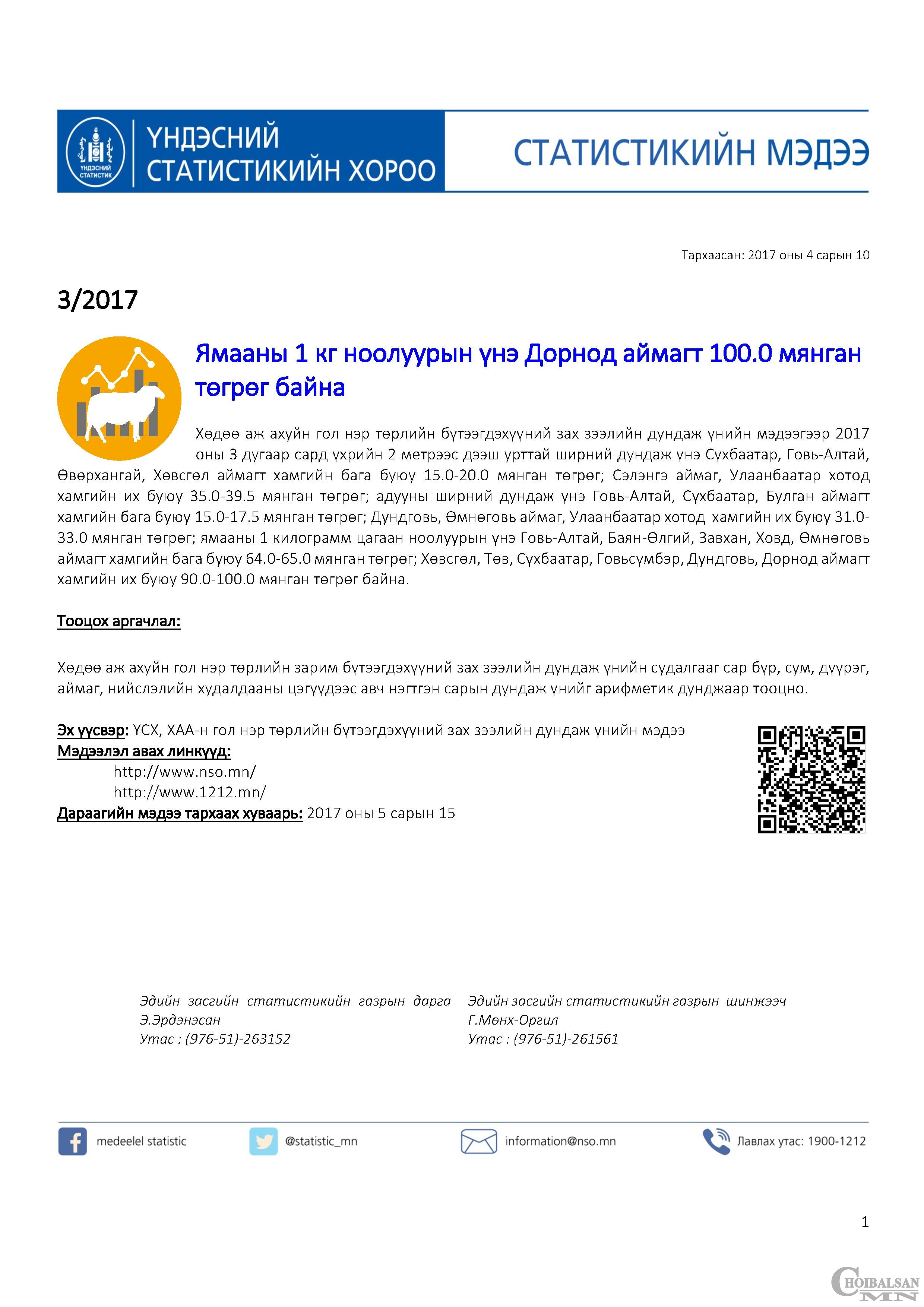 Хөдөө аж ахуйн гол нэр төрлийн бүтээгдэхүүний зах зээлийн дундаж үнийн мэдээгээр 2017 оны 3 дугаар сард үхрийн 2 метрээс дээш урттай ширний дундаж үнэ Сүхбаатар, Говь-Алтай, Өвөрхангай, Хөвсгөл аймагт хамгийн бага буюу 15.0-20.0 мянган төгрөгийн үнэтэй байгаа бол Сэлэнгэ аймаг, Улаанбаатар хотод хамгийн их буюу 35.0-39.5 мянган төгрөг байна. Адууны ширний дундаж үнэ Говь-Алтай, Сүхбаатар, Булган аймагт хамгийн бага буюу 15.0-17.5 мянган төгрөг бол Дундговь, Өмнөговь аймаг, Улаанбаатар хотод хамгийн их буюу 31.0-33.0 мянган төгрөг байна.