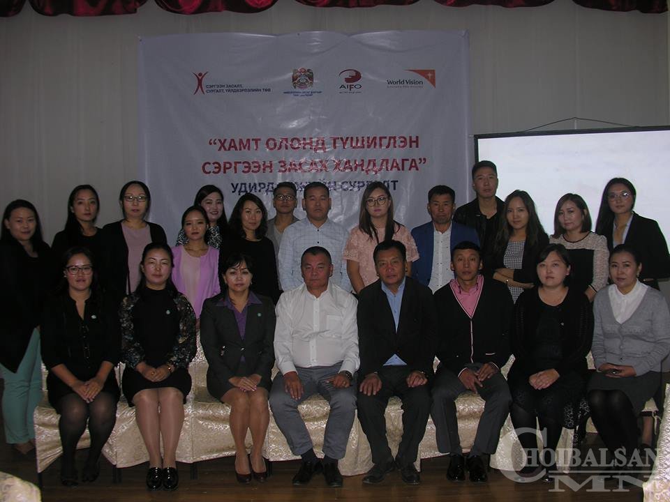 2017 оны 08 дугаар сарын 30-ны өдөр ХНХЯ-ны харьяа Сэргээн засалт, сургалт, үйлдвэрлэлийн төв Дэлхийн зөн Монгол олон улсын байгууллага, Италийн АИФО төрийн бус байгууллагатай хамтран хэрэгжүүлж байгаа төслийн хүрээнд "Хамт олонд түшиглэн сэргээн засах хандлага – Удирдамж” номын агуулгын талаар ойлголт мэдлэг олгох сургалтыг Нийслэлийн 9-н дүүргийн Хөгжлийн бэрхшээлтэй иргэдийн асуудал хариуцсан болон Хүүхэд гэр бүлийн хөгжлийн асуудал хариуцсан мэргэжилтэн, ХНХЯ-ны төлөөлөл зэрэг нийт 40 хүнийг хамруулан амжилттай зохион байгууллаа.