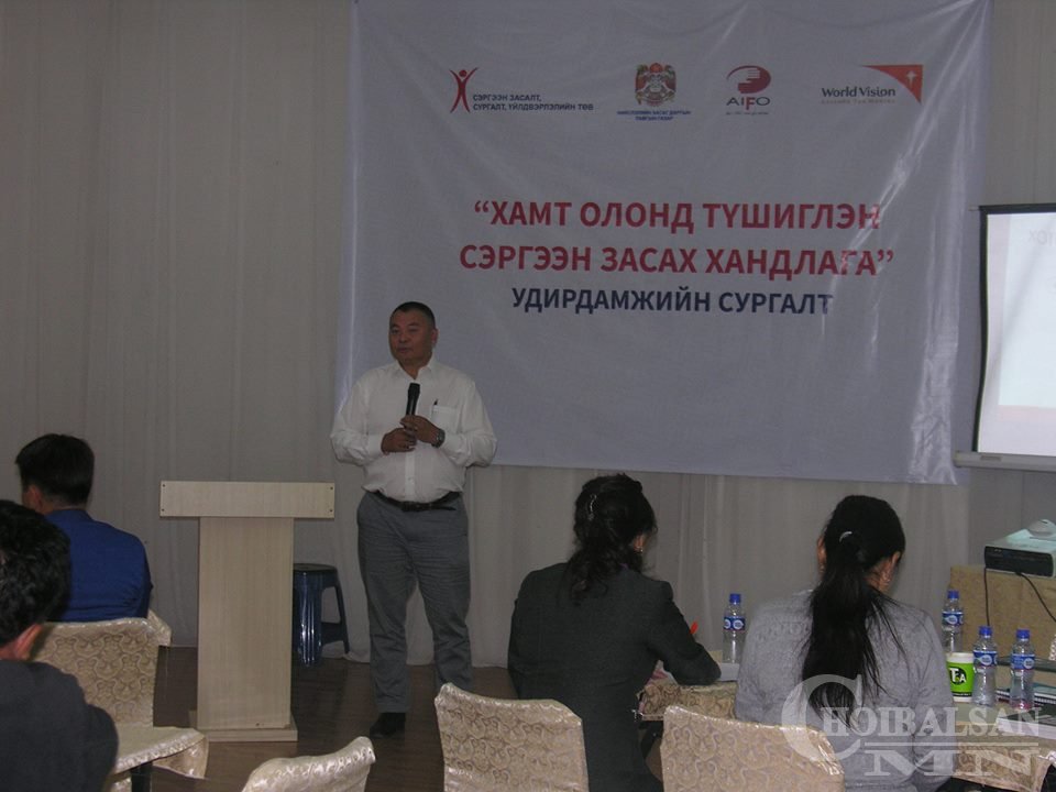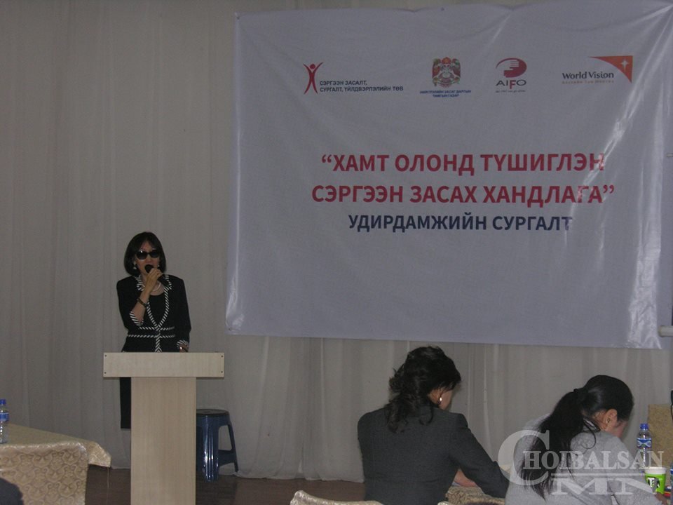Уг сургалтын агуулга нь 2016 онд дахин хянан тохиолдуулж 2 дахь удаагаа хэвлэгдсэн ХОТСЗХ-Удирдамж номын дагуу явагдсан ба АИФО төрийн бус байгууллагын менежер Л.Энхбуянт, Монголын хараагүйчүүдийн үндэсний холбооны тэргүүн Н.Гэрэл болон СЗСҮТ-ийн холбогдох мэргэжилтнүүд илтгэл тавин, хэлэлцүүлэг өрнүүллээ.