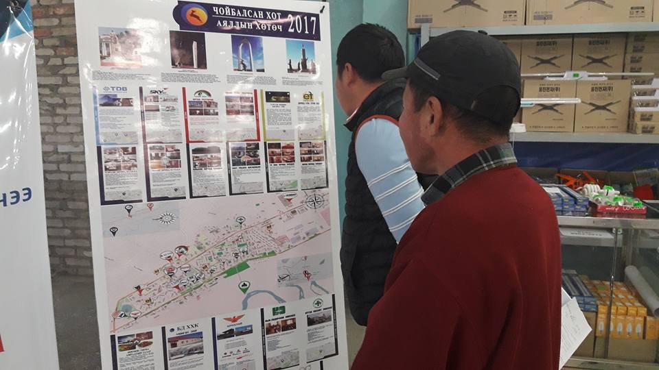 Энэ удаад Чойбалсан хотыг зорин ирэх зочид, төлөөлөгчид, аялагч, жуулчдад зориулсан ЧОЙБАЛСАН ХОТЫН АЯЛЛЫН ХӨТӨЧ мэдээлийн самбарыг хүний урсгал ихтэй газруудад байршуулж эхэллээ.