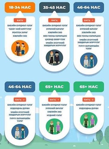 Монгол Улсын Засгийн Газрын 2016-2020 оны үйл ажиллагааны хөтөлбөрт тусгагдсаны дагуу "Иргэн бүрийг жилд нэг удаа эрүүл мэндийн урьчдилан сэргийлэх эрт илрүүлгийн үзлэгт үнэ төлбөргүй хамруулах” ажиллагаа 2018 оны 10 дугаар сарын 01-нээс 2020 он хүртэл хугацаанд хэрэгжих юм.Үзлэгт 18-34 нас, 35-45 нас, 46-64 нас, 65-аас дээш насны ангиллаар оруулах бөгөөд нийт урьдчилан сэргийлэх үзлэгийн 6 төрлийн багцаас сонгох юм.