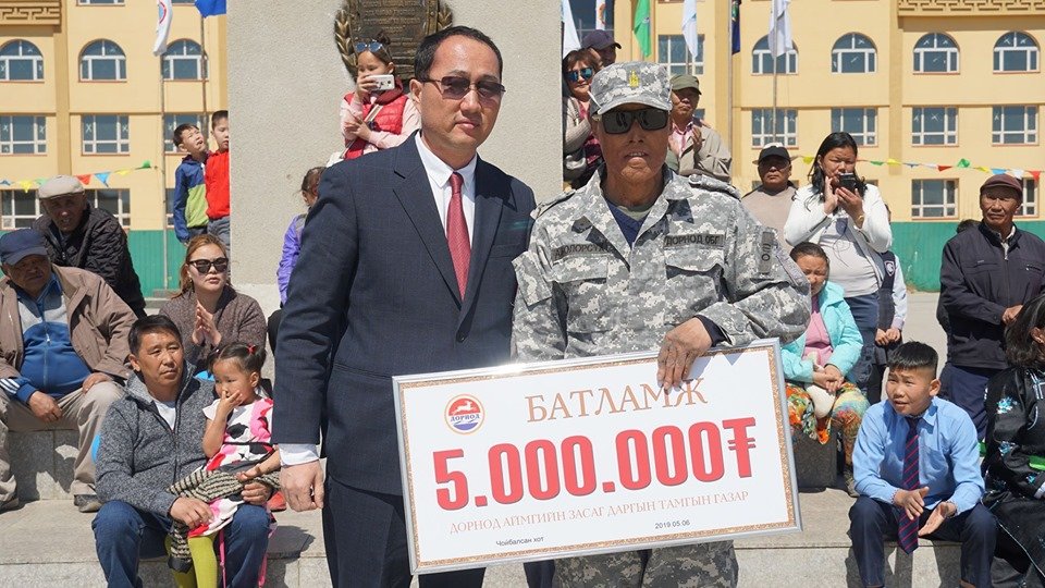 биеийнх нь 65 хувь нь түлэгдсэн Дорнод аймгийн онцгой байдлын эрэн хайх, аврах ангийн аврагч, ахлагч А.Болорсүхийн эмчилгээний зардалд дэмжлэг үзүүлж 5 сая төгрөгийн батламжийг гардуулан өгсөн юм. Аймгийн Засаг дарга эмчилгээгээ сайн хийлгэн, хурдан эдгэрээрэй хэмээн эрүүл энх сайхан бүхнийг хүсэн ерөөв. Аврагч А.Болорсүх нь Солонгос улсад нөхөн сэргээх эмчилгээнд 4 удаа хамрагдаж байсан бөгөөд одоогоор нүүрний зарим хэсэг, 2 хөлний бэртлээс үүдэн өдөр тутмын амьдралд хөдөлгөөний бэрхшээл тулгарч байгаа тул яаралтай эмчлүүлэх шаардлагатай байгаа юм. Түүний эмчилгээний зардалд дэмжлэг үзүүлэх үүднээс "Халуун сэтгэл” хандивын аяныг өрнүүлээд байгаа бөгөөд эмчилгээний зардалд 90 сая төгрөг шаардлагатай байгаа юм.