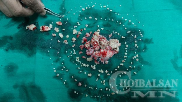Мэс засал хийсэн эмч нар хэлэхдээ хүүгийн хавдрыг нээхэд жижигхэн "сувд” гарч ирсэн дараа дахиад нэг ахиад нэг гээд сүүлдээ бид залхаж эхэлсэн гэнэ. Ээлжиэлж авсаар 7 цагийн турш 232 ширхэг жижиг цагаан сувд шиг шүднүүдийг авсан гэнэ. Энэ нь маш ховор тохиолддог шүд эрүүний нэгэн төрлийн гажиг гэнэ.